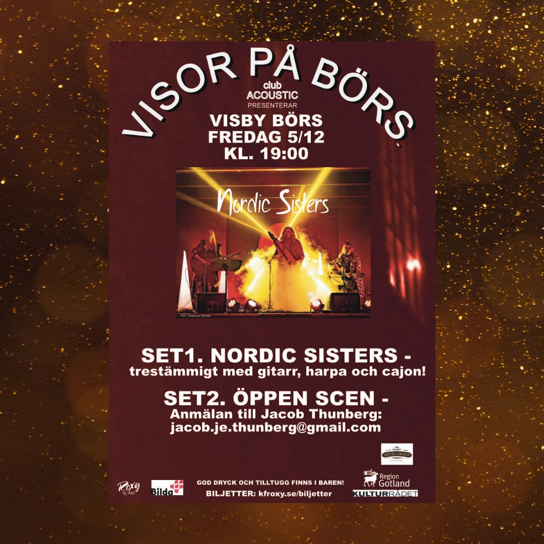 Efter sitt stämningsfulla framträdande på Visby Musik&Poesifestival återvänder nu Nordic Sisters för en konsert på visor på Börs 5/12 - kombinerat med Öppen Scen!