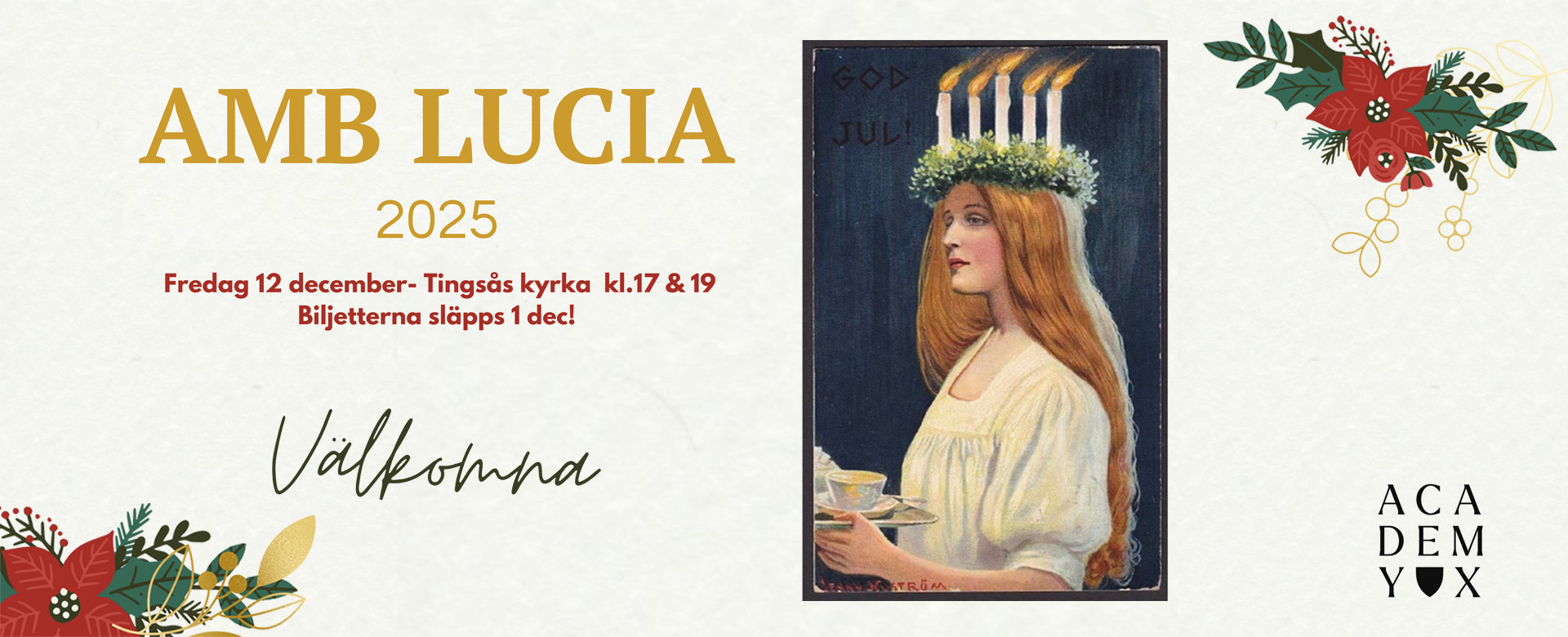 Välkomna till AMB´s luciatåg 2025 i Tingsås kyrka den 12 december!