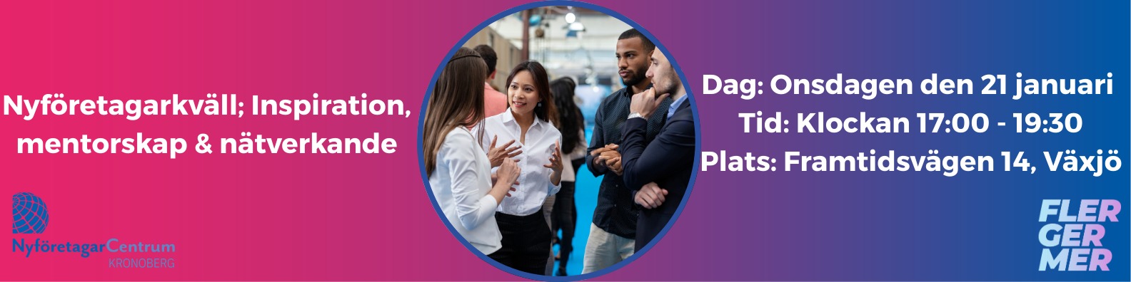 Vi bjuder in nyföretagare, mentorer och partners till en inspirerande after work där vi tillsammans laddar inför det nya året. Under kvällen möter vi spännande nyföretagare som delar med sig av sina företagarresor, träffar våra samarbetspartners och hyllar mentorskapet genom att uppmärksamma och dela ut priset Årets mentor i Kronobergs län.