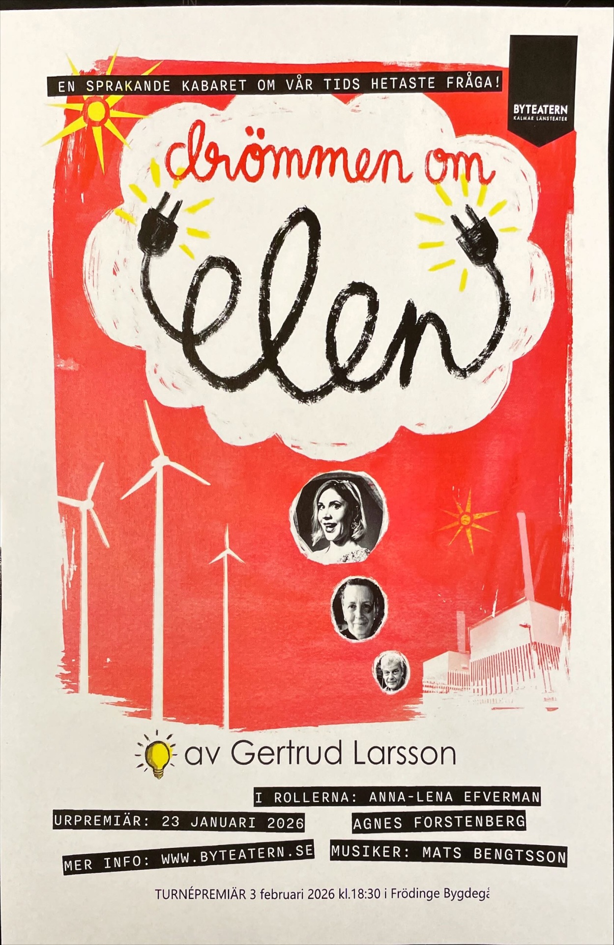 Drömmen om elen turnerar på små scener och spelar på Byteatern Kalmar Länsteater under våren 2026.Turnépremiär: 3 februari i Frödinge.
