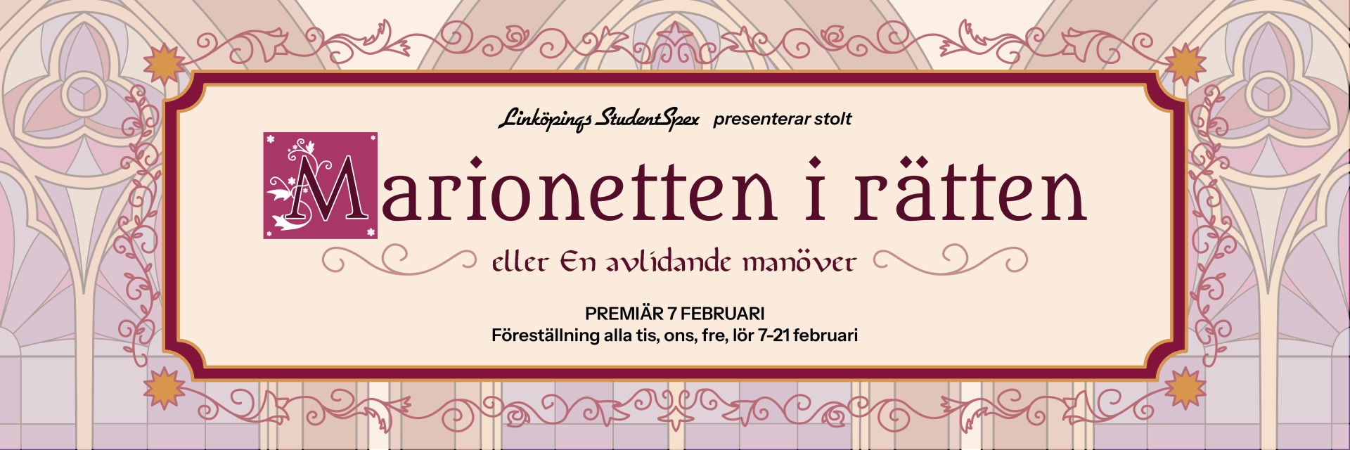 Linköpings Studentspex presenterar föreställningarna av Marionetten i Rätten - En Avlidande Manöver