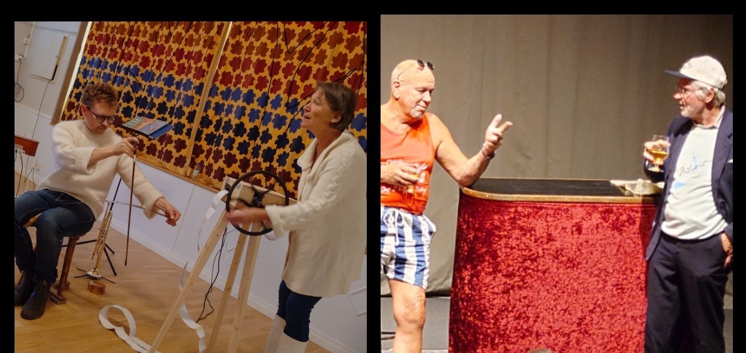 Två enaktare. Dels en poetisk-musikalisk föreställning baserad på Verner Aspenströms kluriga ordkonst. "Du mäste öva dig i det verkliga" heter föreställningen och medverkar gör skådespelaren Kickan Holmgren och musikern Jakob Norin.