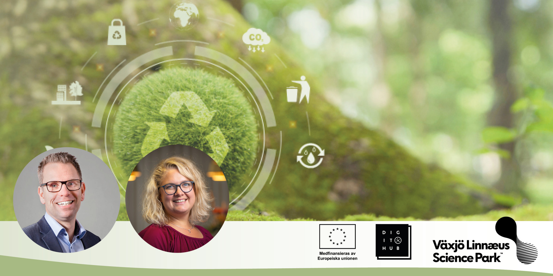 Lena Öhrlund, affärsutvecklare på Växjö LInnaeus Science Park presenterar grunderna i Cirkulär ekonomi och hur förändrade affärsmodeller kan bidra till avsevärda skillnader när det kommer till klimatpåverkan.