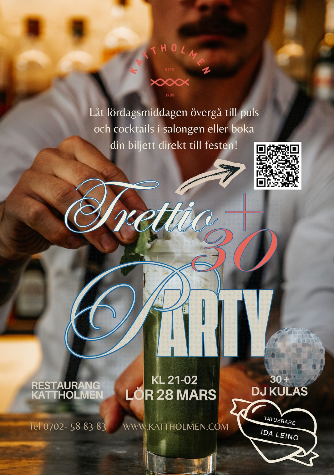 Sista lördagen i månaden bjuder Kattholmen in dig som är 30+ för en kväll som kommer bestå av bra musik, dans och bubbel!
