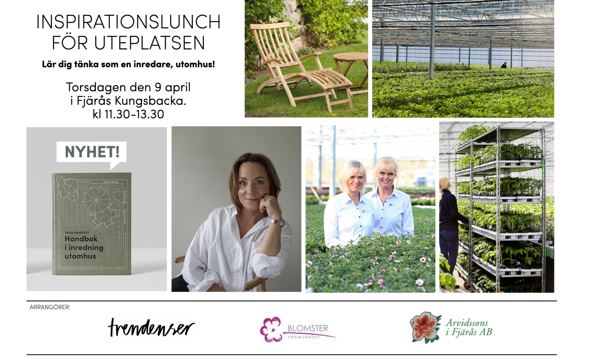 Vad ingår: En välfylld goodiebag, ett exemplar av "Handbok i inredning utomhus", två inspirationsföreläsningar, en matig macka och gott fika, kaffe eller te.
