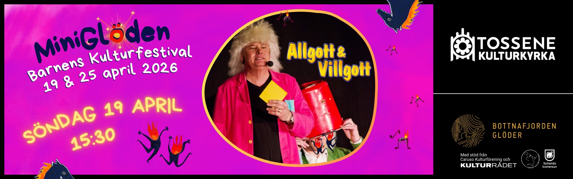 MiniGlöden arrangeras av Tossene Kulturkyrka med stöd av Kulturrådet och Caruso Kulturförening som en del av Bottnafjorden Glöder.
