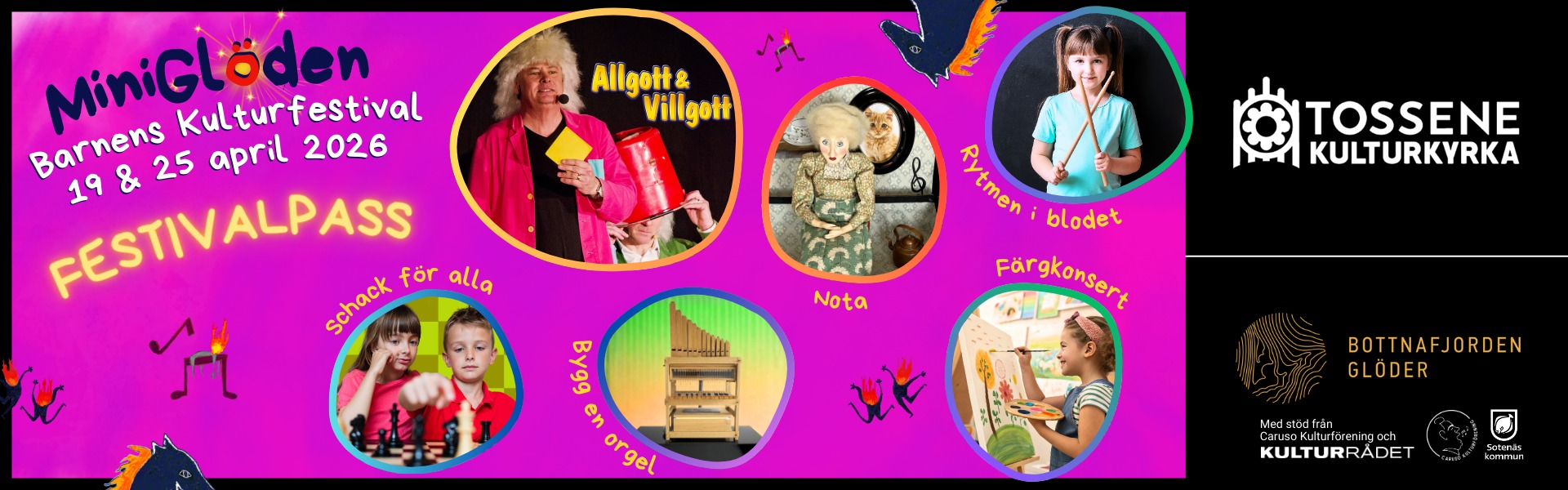 MiniGlöden arrangeras av Tossene Kulturkyrka med stöd av Kulturrådet och Caruso Kulturförening som en del av Bottnafjorden Glöder.
