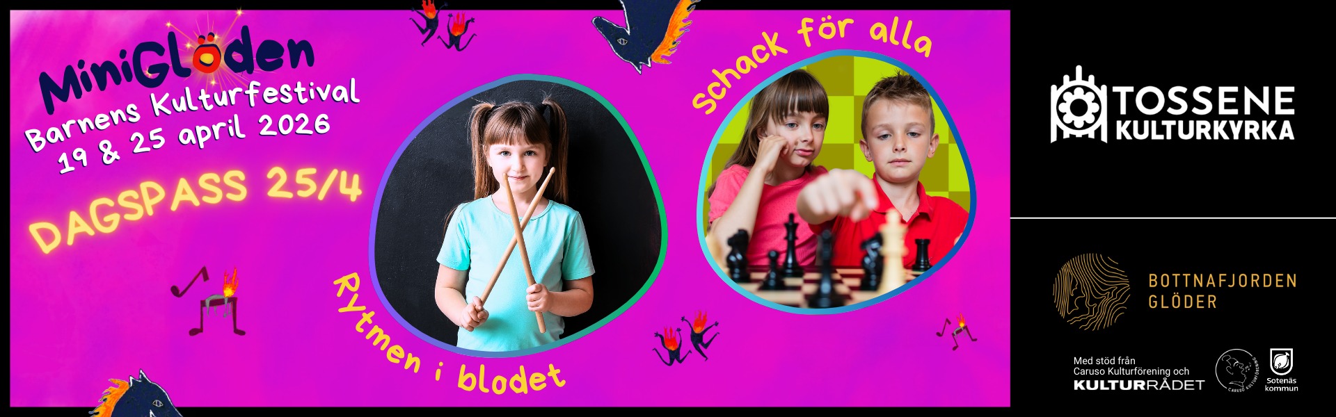 MiniGlöden arrangeras av Tossene Kulturkyrka med stöd av Kulturrådet och Caruso Kulturförening som en del av Bottnafjorden Glöder.
